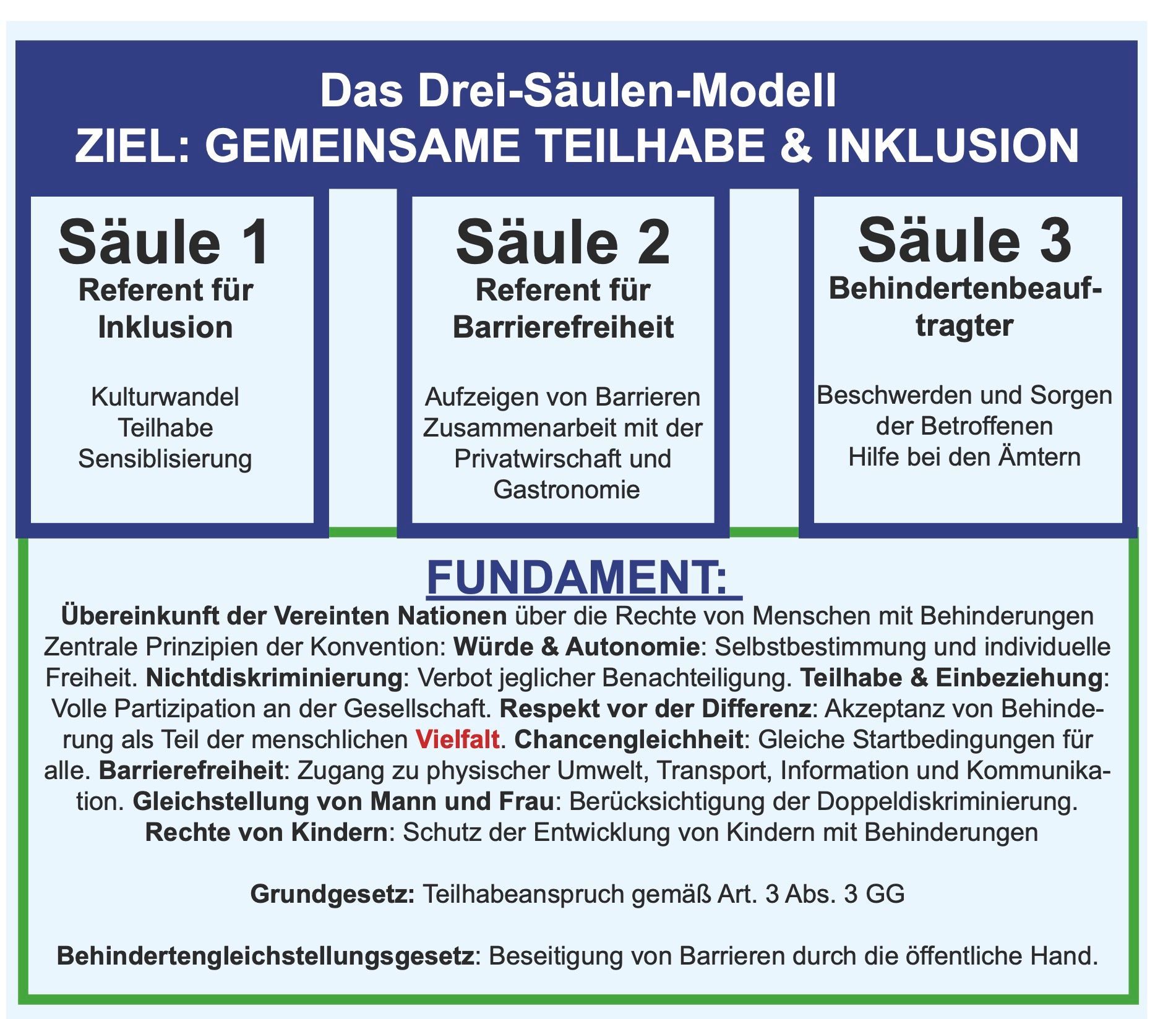 3. Öffentlichkeitsarbeit: Information der Bürger über Rechte und Unterstützungsangebote für Menschen mit Behinderungen.